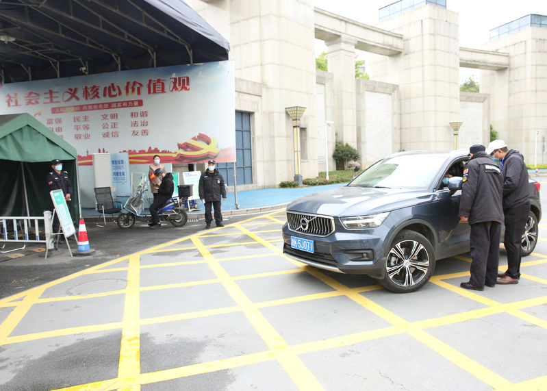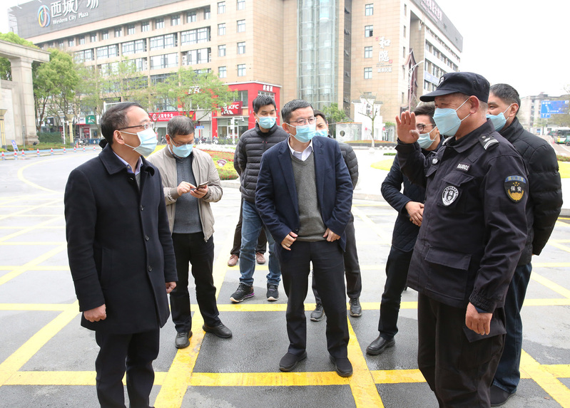 在南大门,校保安队长谢金华正在忙碌着,见到校领导的到来,他不慌不忙地敬了个礼,自豪地说:“我们按照上级的防疫要求,24小时守牢学校的南大门。”当得知“老谢”已在学校安保战线工作多年,几十年如一日吃住在学校,王利琳、李俊杰等很欣慰,对其以校为家的工作状态大为赞赏:“感谢‘老谢’同志的辛勤付出,希望你带领队员们继续守护好师生的平安……”