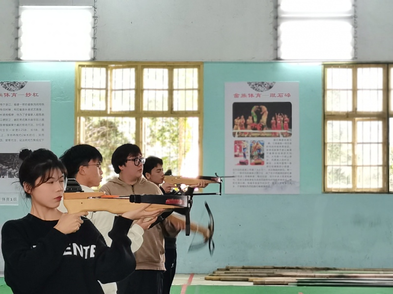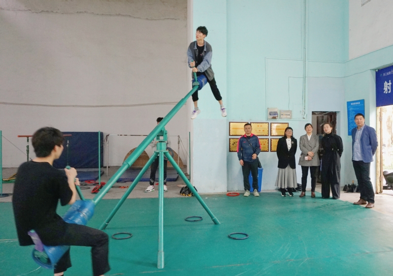王赳了解了本学期运动队训练备战情况,各项目的训练场地、器材情况,查看了民族健身操、表演项目、射弩、陀螺、蹴球、高脚竞速、板鞋竞速、押加等项目的训练情况,并对备战训练提出了具体建议和要求。