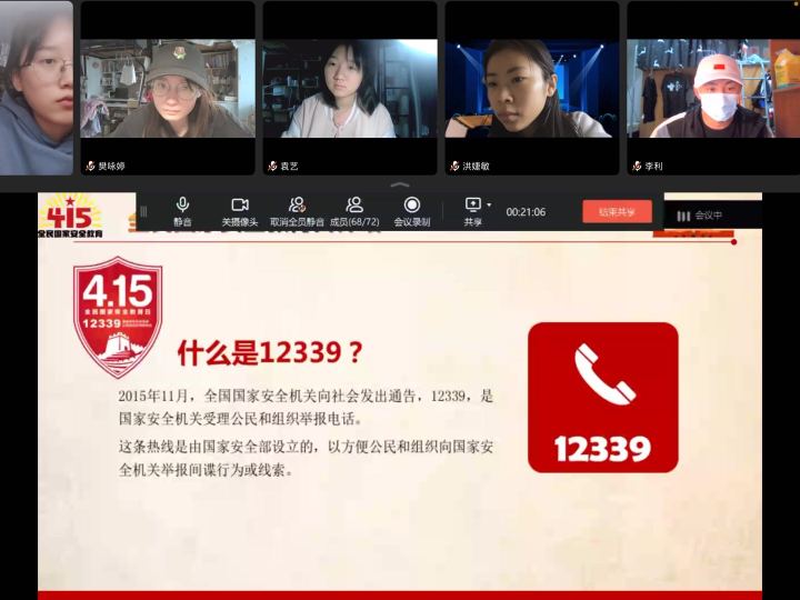 教师教育学院举办“全民国家安全教育日”线上宣讲会,详细讲解如何正确认识和维护国家安全,让学生知晓维护国家安全是每一个公民应尽的义务,并通过观看视频让学生了解危害国家安全的行为和相应防范措施,还组织了在线知识问答。