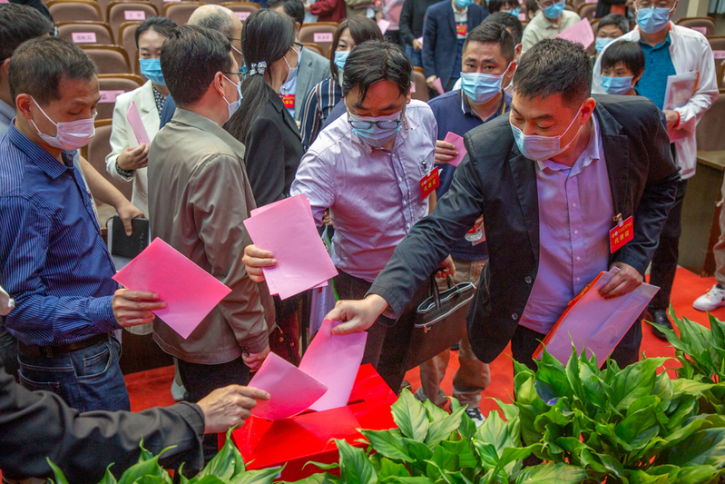 开幕会闭会时,正式代表对学校2022年十件实事进行了现场投票。