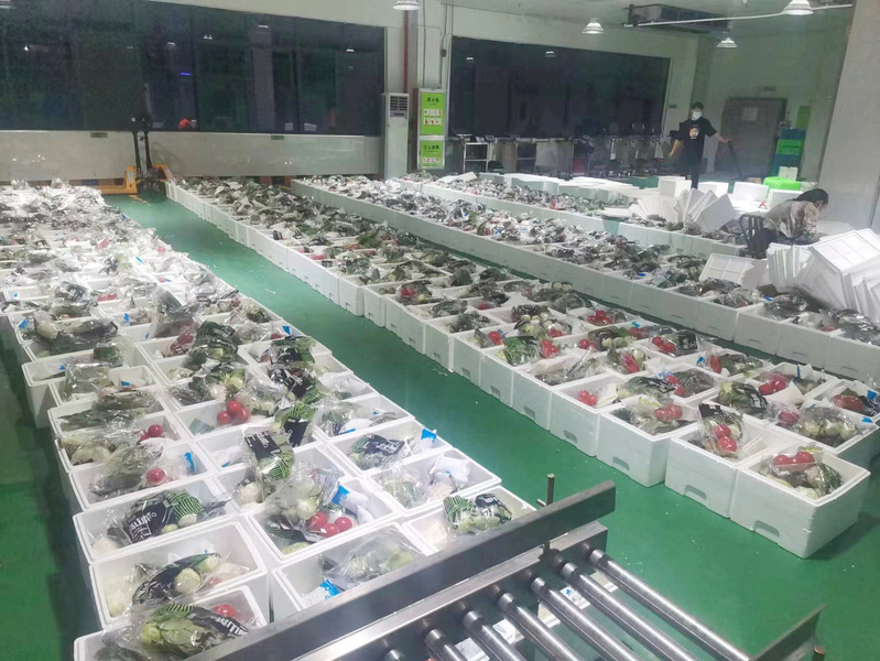 此次援沪物资以上海急需的新鲜蔬果为主,当日新鲜采摘,即时保鲜包装,当晚连夜送往目的地,确保上海交通大学的兄弟姐妹们能第一时间拿到最新鲜的蔬果。
