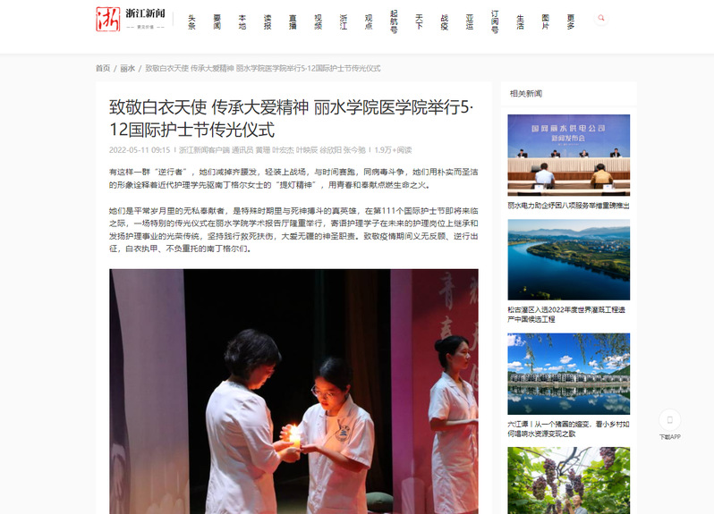 5月11日,浙江新闻客户端报道了我校医学院举行5·12国际护士节传光仪式的消息。