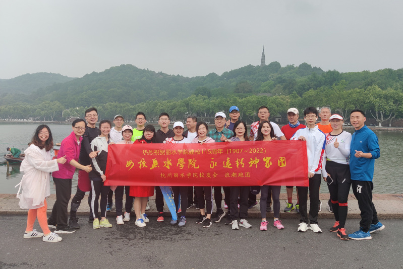 近日,杭州校友会组织校友开展健康跑活动,以此庆祝母校办学115周年,得到省级媒体关注。图为张辉虎(右二)校友参加活动合影留念。