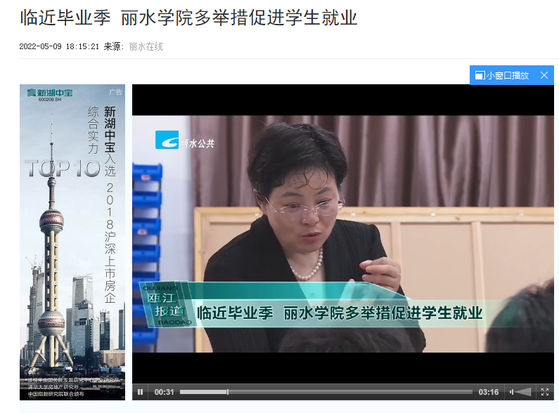 5月9日,丽水电视台播出了我校多举措促进学生就业的消息。