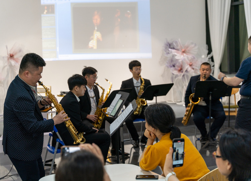 活动中,王有为和他的学生还为大家带来了《萱草花》《Take Five》《赛马》《九儿》《京调》等经典音乐作品。优美的旋律,让台下的观众如痴如醉,切身感受到了萨克斯风的独特魅力。