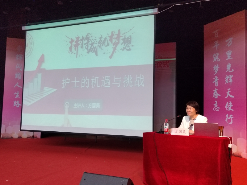 护理83届校友方国美从疫情防控和国家政策对护理的要求、社会健康建设对护理人员的要求、护理专业建设特色和人才队伍建设、护理文化和团队建设四个维度,用身边的案例深入解读了护理事业面临的挑战、机遇,分享了护理特色、护理团队的品牌建设和文化建设成效。