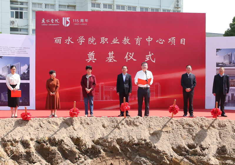 为迎接115周年校庆日的到来,5月18日上午09:18分,我校在东校区碧云路东侧区块隆重举行职业教育中心项目奠基仪式。丽水市二届人大常委会主任、原丽水学院筹委会临时党工委书记焦光华,丽水学院原党委书记肖建中,丽水学院原党委书记廖思红,丽水学院原校长朱土兴等老领导和校党委书记王利琳,校长李俊杰等校党政班子成员出席,奠基仪式由副校长周一红主持。