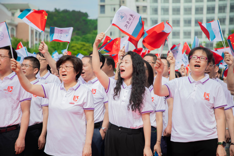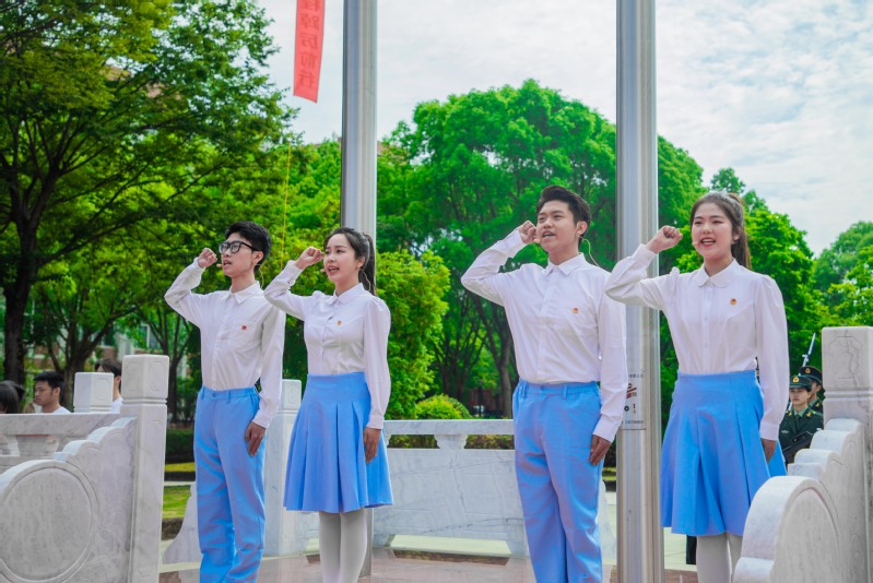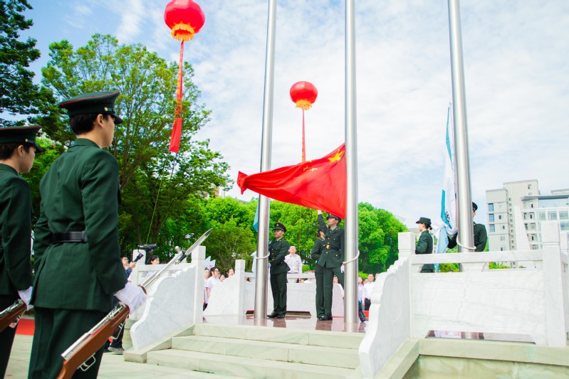 五月的清晨,阳光明媚、草木葱茏,校园里一派欣欣向荣的景象。上午9时许,115周年校庆日升旗仪式正式开始,来自校军魂社、国旗护卫队的退伍学生迈着整齐而有力的步伐,分别手持鲜艳的五星红旗、校旗入场,伴随着雄壮的《义勇军进行曲》响彻广场,鲜艳的五星红旗冉冉升起。随后,全场齐声唱响《丽水学院之歌》,在校歌悠扬的旋律中,校旗缓缓升起,现场师生和校友深情表达对伟大祖国的无限热爱、对母校生日的深情祝福。