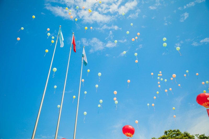 仪式临近尾声,在场师生放飞手中的梦想气球,挥舞着手中的国旗和校旗,为母校百十五华诞庆贺。让我们一同携起手来,汇聚全体丽院人的力量,用远大理想描绘学校美好未来,共同携手谱写母校新的篇章,祝福丽水学院的明天更加辉煌!
