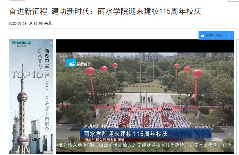 5月19日,丽水电视台新闻综合频道播出了我校迎来建校115周年校庆,举行校庆活动的综合消息。