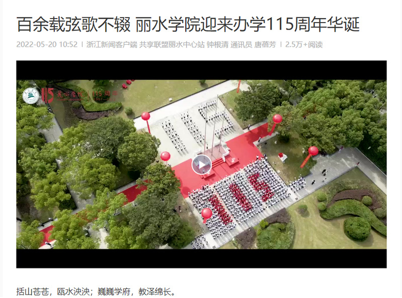 5月20日,浙江新闻客户端刊发了我校迎来办学115周年华诞,举行校庆活动的消息。