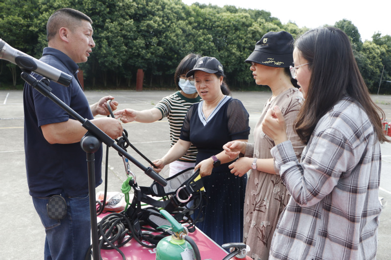 在培训过程中,保卫处对学校配备的灭火器种类进行了介绍,对消防器材的使用方法、使用注意事项作了详细的解说,并对火灾报警与疏散自救、初期火灾处置、初级火灾判断与处置等作了详细讲解。在讲解后,机关部门工作人员进行了现场灭火器和水带的操作体验,将理论运用于实践。