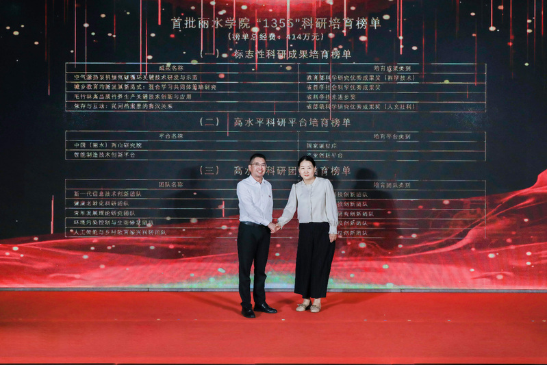 纳爱斯集团董事长兼总裁何丽明在致辞中,祝贺丽水学院办学115周年,并向在座的科研工作者致以节日的祝福。他指出,丽水是“两山”理念的重要萌发地、先行实践地。丽水学院服务生态文明的办学与纳爱斯在生态方面的实践高度契合,双方都致力于投身浙江大花园最美核心区的建设。他坚信,双方的合作是基于共同的追求,彼此都怀揣着一颗振兴丽水的赤诚之心,都有着“两山”转化向未来发展的美好憧憬;双方的合作,定能成为美丽经济的标杆、生态产业的高点,共同谱写出丽水生态文明建设与美丽经济发展的全新篇章。