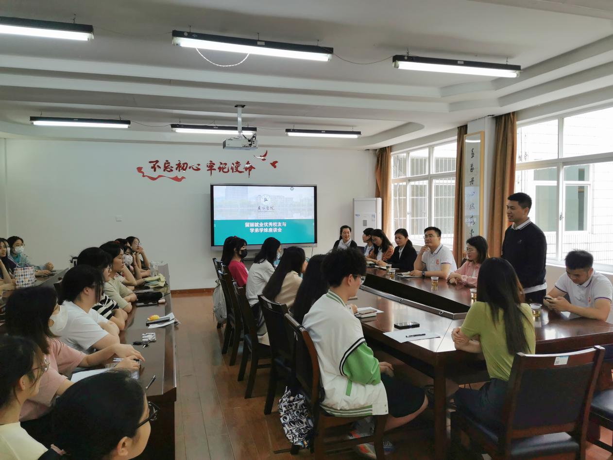 他们还与教师教育学院的在校生开展了座谈会,座谈会上一片欢声笑语,氛围轻松融洽。校友们不仅从学习学业、职业发展、生活方式、友情爱情等方面分享了经验,还对留丽就业的相关政策、各县市教育局的岗位需求进行了全面解读。