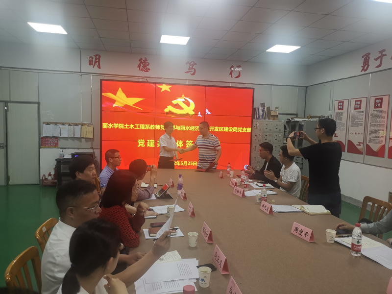 两支部党员齐聚土木工程系党员活动室开展活动,丽水经济技术开发区党群工作部副部长周爱平详细介绍了近年来丽水经济开发区狠抓基础设施建设、产业聚集发展及承载能力提升,经济持续快速发展,希望与丽水学院在人才培养等方面加强交流合作,勠力同心为丽水经济开发区建设贡献力量。同时,双方就双招双引、资源共享、人才培养、人才共享、科研项目、建筑行业前沿技术等方面进行了深入交流。