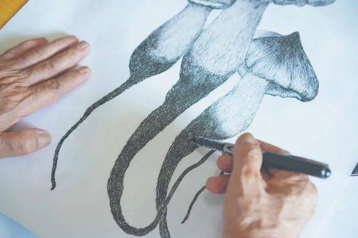 “专心走路,潜心研究,细心画画。”80岁的吴锡朋老师这样形容自己。他因画野生菌而被人关注,仅用一支碳素笔就能绘制惟妙惟肖的菌蕈。他早已是鼎鼎大名的野生真菌专项研究和驯化的专家,比如以草代木制菇的生产技艺和金耳、羊肚菌等野生菌的驯化就是他的代表性技术成果。他曾获省级科技进步二等奖,开发配制的“灵芝花旗参”“银耳雪梨”两个易拉罐饮料,其中“灵芝花旗参”饮料获1994年国际金牌奖,“银耳雪梨”获杭州参展消费者公认一等奖。