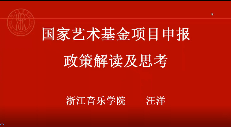 5月27日下午,浙江音乐学院副院长兼音乐教育学院院长汪洋教授应邀做客民族学院“鸣泉”学术沙龙,通过腾讯会议给我院教师作题为《国家艺术基金项目申报政策解读及思考》的学术讲座。