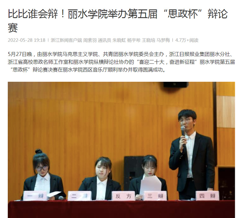 5月28日,浙江新闻客户端刊发我校举办第五届“思政杯”辩论赛的消息。