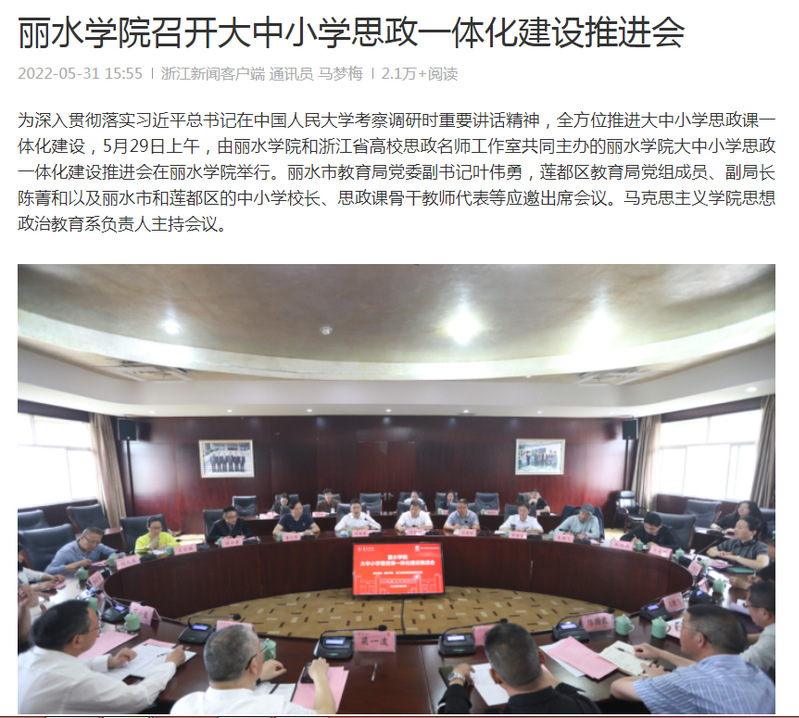 5月31日,浙江新闻客户端刊发了我校召开大中小学思政一体化建设推进会的消息。