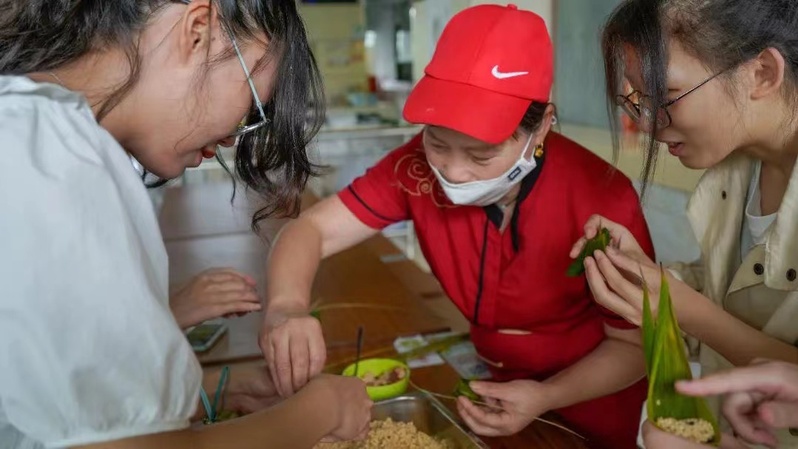 端午节当天,风味餐厅推出系列活动,与师生共贺端午。金桥食府二楼、食香苑、聚香食府一楼、金桥食府一楼与莲花食府二楼纷纷在端午期间为师生送粽子。西区笨笨熊餐厅、莲花食府开展了“迎端午包粽子”活动。活动现场,食堂员工精心准备了糯米、粽叶、红枣、扎绳等原材料,邀请部分学生向食堂员工们学习如何包粽子,让在校学生切实体验包粽子的乐趣。莲花食府三楼还为师生们准备了百分百中奖的“霸王餐”幸运转盘活动。参加活动的陈同学表示:“很感谢学校给我们这样的体验,这样的活动很暖心。”