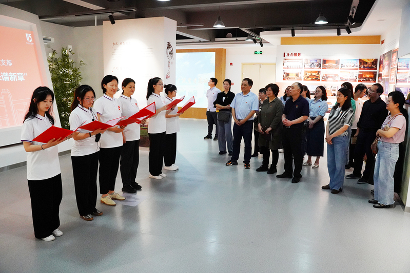 在校史馆,全体党员面向党旗重温入党誓词,并为5月份入党的党员过政治生日。人事处党支部教师与人文教育系教师党支部教师、结对帮扶的文秘21班入党积极分子一起朗诵了《校庆献词》,共同表达师生对学校的深切情谊和美好祝愿。校史馆参观完毕,及时开展了党史、校史知识抢答活动,进一步加深大家对党史、校史知识的学习。