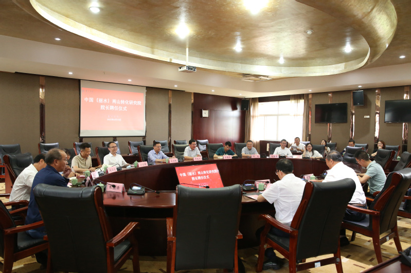 饶鸿来在仪式上激动地说,回到母校,感到格外亲切,在母校求学的日子仿佛就是昨天;能够荣归母校,继续为母校的发展添砖加瓦是一件幸福的事。他改编创作了古诗:“笃行‘两山’事,必有好前程;请君观此理,天道甚分明”,表达对两山转化研究这项工作的热爱,憧憬这份事业的美好未来。饶鸿来庄重表示,将带领好团队,竭尽所能,争取资源,与两山研究的各位同仁一道,不断开创两山研究事业的新局面,争取早日实现建成国家级智库的奋斗目标。