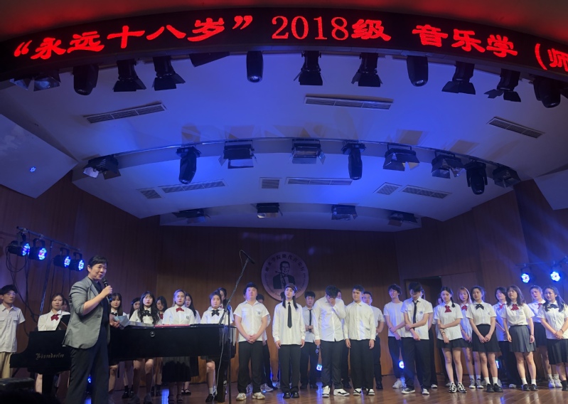 近日民族学院“永远十八岁”2018级音乐学(师范)毕业音乐晚会在西区音乐厅举行。毕业生们齐聚盛会,置身于气球、鲜花和欢呼声中,共忆青春,续航未来。校党委委员、民族学院院长王赳出席了活动。