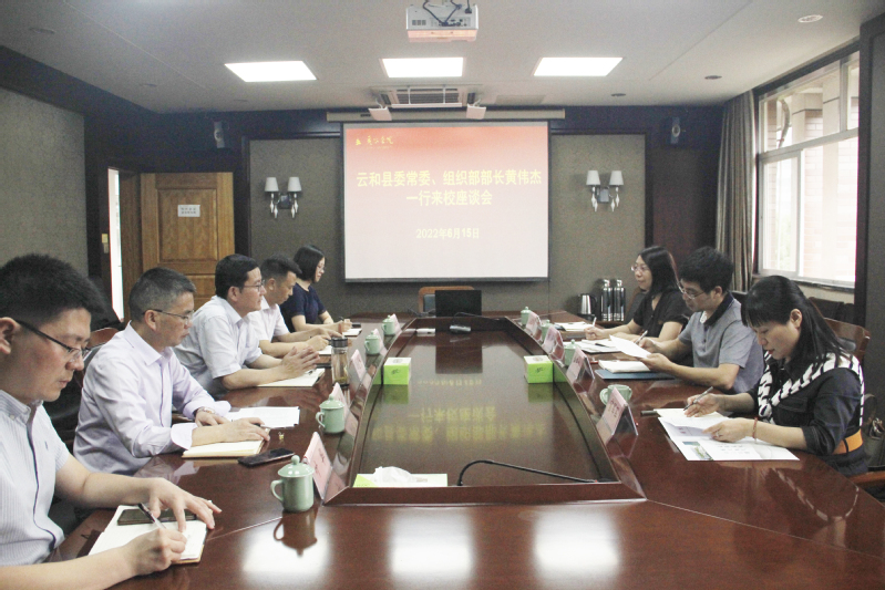 6月15日下午,云和县委常委、组织部部长黄伟杰一行来我校考察交流,校长李俊杰参加了交流座谈会。