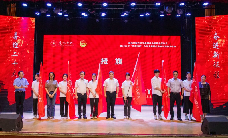 为认真学习贯彻习近平新时代中国特色社会主义思想,全面贯彻落实党的十九大和十九届历次全会精神,帮助同学们了解社会、认识国情、增长才干,在浙江省第十五次党代会召开之际,我校在东区学术报告厅举行大学生暑期社会实践出征仪式暨2022年“青聚浙丽”大学生暑期社会实习岗位发布会,以实际行动助力丽水浙西南大花园建设,努力实现青年与城市相互成就、共同成长。校党委副书记叶华松,校党委委员、宣传部长廖峰,团市委副书记高磊,丽水九县(市、区)团委负责人以及我校相关职能部门负责人出席大会。