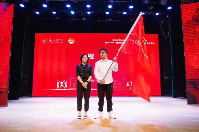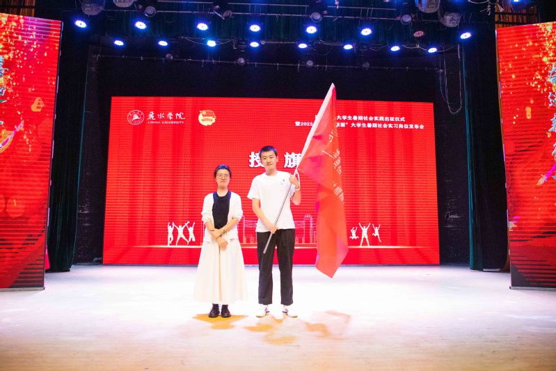 活动最后,九县(市区)团委向我校“双百双进”团队代表授旗,与会领导向暑期社会实践重点团队代表授旗,在激昂的音乐声中,全场团队挥旗出征,揭开了我校2022年暑期社会实践活动的序幕。