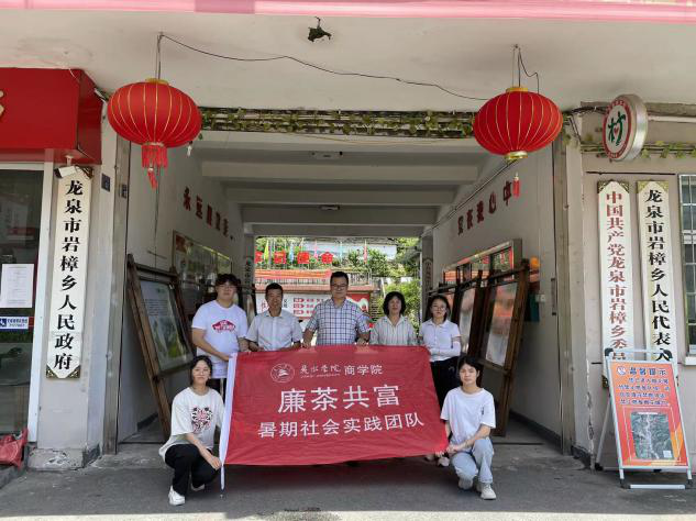 在指导老师的带领下,团队首先赴岩樟乡郑庄村开展实地调研,就岩樟源茶叶的种植、管理、制作工艺及宣传、包装、销售等问题采访当地乡党委书记,体验观察茶叶的加工制作过程。队员们还进山找寻岩樟源磨石栏野生茶,深入了解岩樟源清廉茶品质及背后的清廉文化,对清廉茶前景有了更深刻的认知。之后,团队前往龙泉青瓷博物馆和上茶街了解“茶瓷互动”主题宣传,并以此为基础拓展龙泉优质生态茶叶市场,实现“水、茶、瓷”有机融合,茶品牌建设取得卓越成效。同时,团队成员对上茶街游客及商家店铺进行调查走访,切身感受到清廉茶带动共同富裕的强大力量。