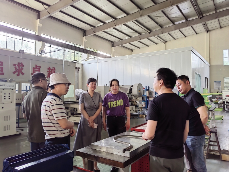 随后,考察团一行来到浙江金马逊机械有限公司。该公司为世界一流的弯管装备和精密导管制造商,为航空航天等复杂导管制造技术进步做出了积极的贡献。工作人员向大家详细地介绍了公司的基本情况、产业背景、技术突破、主要产品以及应用案例等,并参观了部分生产制造环节。