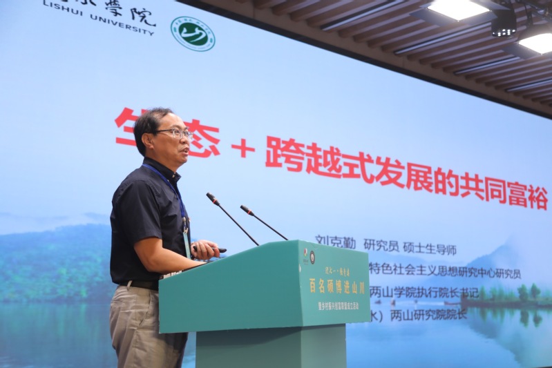 活动第二阶段进行了学术交流对接会。由之江智慧场景研究中心主任、清华大学公共管理学院院友会理事陶海青、中国科学院大学校友会协同创新与产业联盟副秘书长杜晨光、中国(丽水)两山学院执行院长刘克勤、深圳市蕾奥规划设计咨询股份有限公司乡村振兴总监蒋莎琳等特邀嘉宾进行发言。刘克勤以“生态+跨越式发展的共同富裕之路”为主题,从“两山”发展理念的核心要义、生态产品价值实现、新增长极三方面入手,从思想跨越、双招双引、重大平台和绿色双碳等四个维度,介绍了丽水经验,系统剖析了山区如何实现跨越式发展。