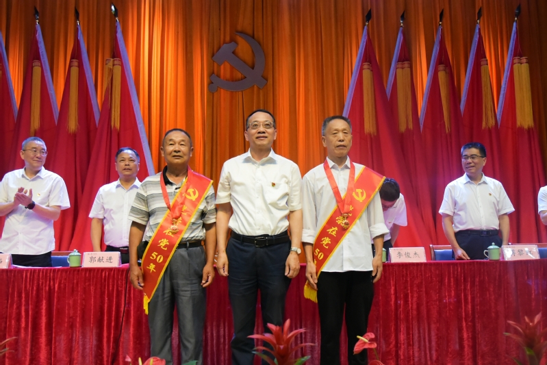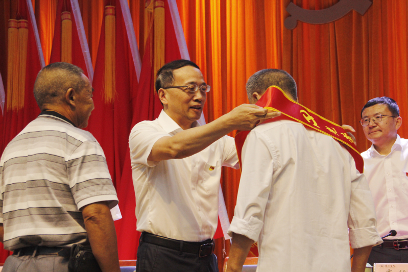 会上,王利琳为“光荣在党50年”老党员绶带并颁发纪念章。