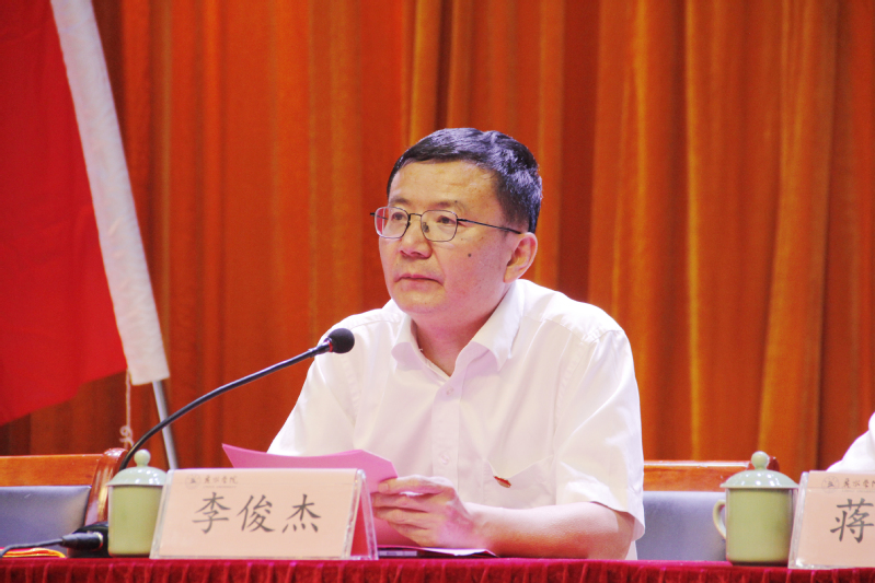 李俊杰在主持时表示,希望受表彰的先进集体和个人以此为新的起点,再接再厉,为学校的建设和发展再创佳绩;希望全校各基层党组织和全体共产党员以先进基层党组织和模范党员为榜样,始终保持开拓进取的精气神,扎实开展工作,为建设服务绿色发展的高水平应用型大学贡献力量。