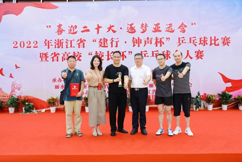 7月9日上午,为期3天的2022年浙江省“建行·钟声杯”乒乓球比赛暨省高校“校长杯”乒乓球个人赛在丽水市体育中心圆满落幕。我校党委书记王利琳、党委副书记叶华松出席闭幕式,并为获奖选手颁奖。