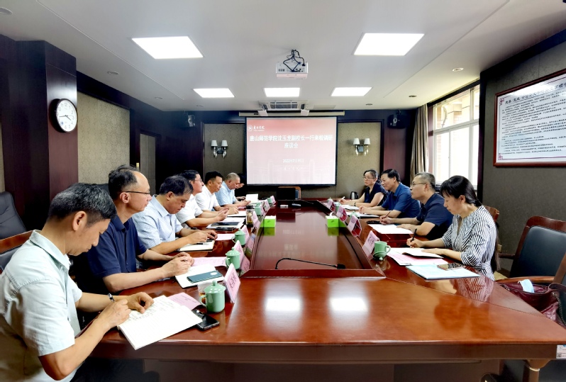 7月11日下午,唐山师范学院副校长沈玉龙一行来校调研交流硕士点申报相关工作,校长李俊杰,校党委委员、办公室主任赵卫川出席调研座谈会。