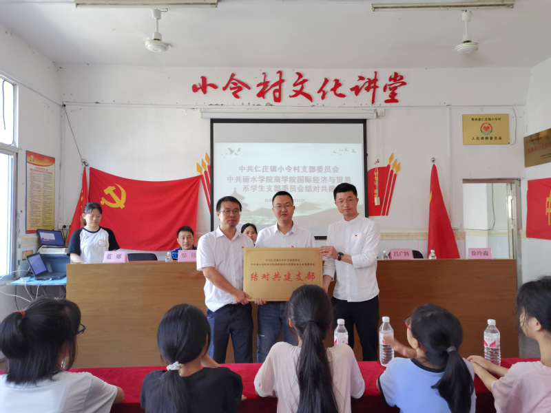 近日,商学院国际经济与贸易系学生党支部与青田县仁庄镇小令村党支部在小令村文化讲堂举行了支部结对共建授牌仪式,同时开展“喜迎二十大 奋进共富路”联合主题党日活动。