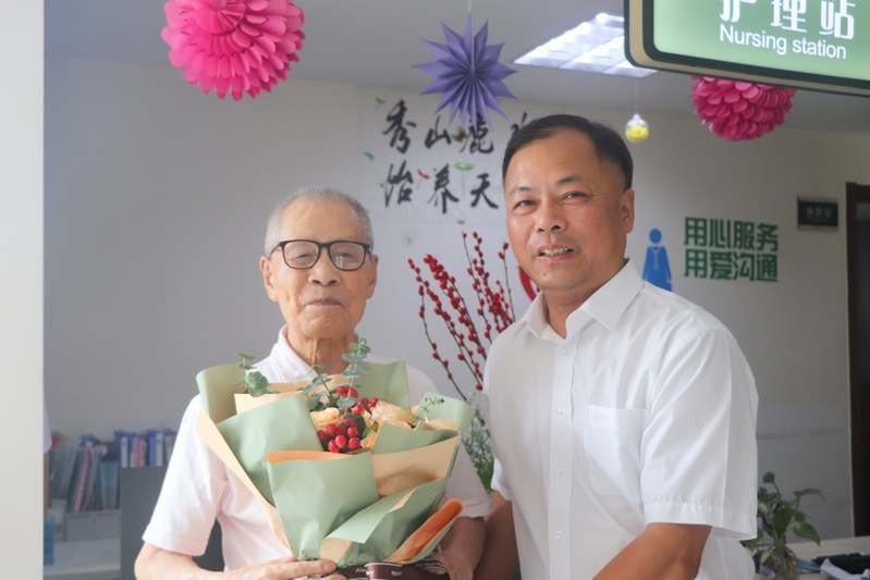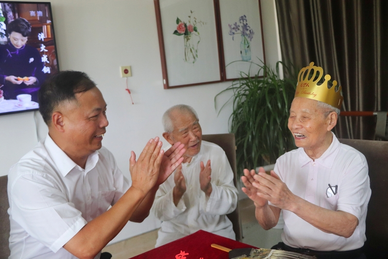 7月14日,是我校退休教工叶明前的百岁农历生日。学校党委副书记郭献进一行专程前往怡福家园养老院,送上鲜花和生日蛋糕为老人祝寿,祝福老人福寿绵长,幸福开心。