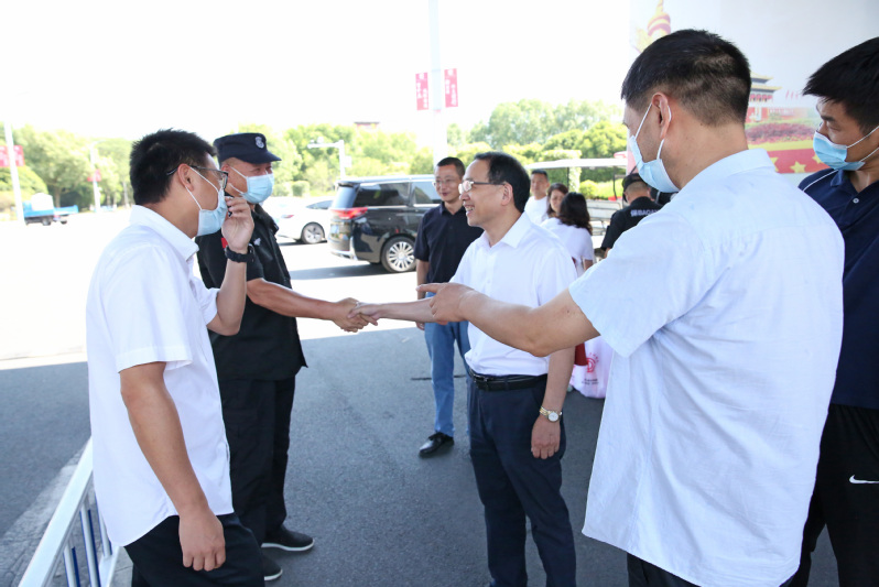 在校南门,王利琳仔细检查了校园当前的出入情况,向兢兢业业奉献在校园安保事业的队员们表达了谢意。他希望,大家在高温下要做好个人防护,保重身体,以更饱满的精神状态投入到校园安保工作中来,全面落实好校园疫情防控的各项规定,继续为师生安全保驾护航。
