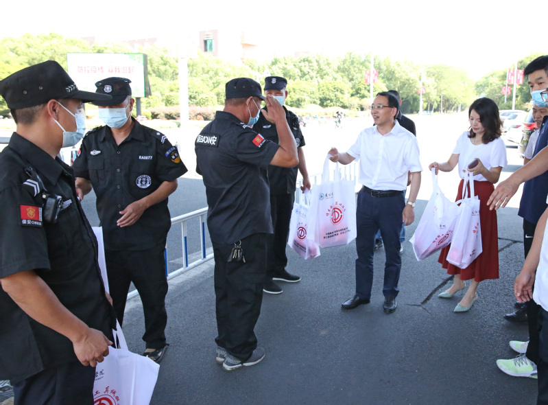 时值酷暑,为关爱辛勤奋战在一线的师生员工,7月29日上午,校党委书记王利琳在副校长彭兵,校党委委员、办公室主任赵卫川的陪同下来到校内各地走访慰问,代表学校向在高温酷暑下坚守岗位一线的师生员工致以诚挚问候,并送上防暑降温用品,带去夏日里的“清凉”。
