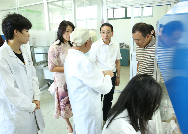 随后,王利琳一行来到致远楼(10号楼),看望了正在积极备战“挑战杯”的生态学院“菌苑拾趣”团队。该团队致力于食(药)用菌技术、文化传承和产品研发工作。在特聘专家81岁高龄的吴锡朋高级农艺师的指导下,师生们正在认真细致地一遍又一遍地做实验。王利琳对大家充分利用暑期时间,从事学科竞赛、科研攻关给予高度肯定,他叮嘱来校不久的年轻博士们要珍惜时光,努力工作,以更好的科研成果来反哺教学,用更好的业绩来站稳“三尺讲台”。