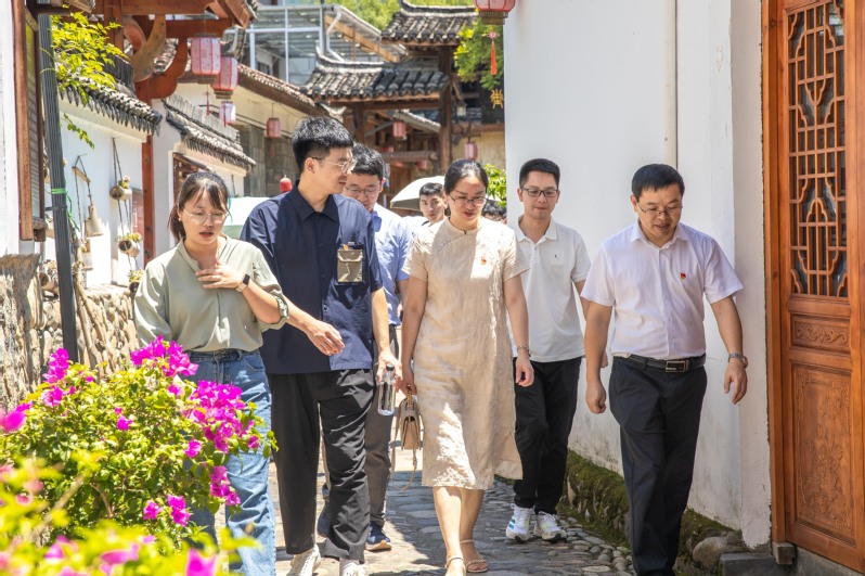 会后,“未来乡村”政产学研党支部共同体赴大均村、伏叶村、云中大漈等地考察景宁未来乡村建设情况。在大均村,共同体成员们参观了文创基地、民族书屋、绿曲酒酒坊,详细了解了大均民族乡村发展的有关情况。在伏叶村,成员们考察了最美民宿的发展。在云中大漈,成员们走进时思寺,考察了乡村振兴与文旅融合发展的现实样板。