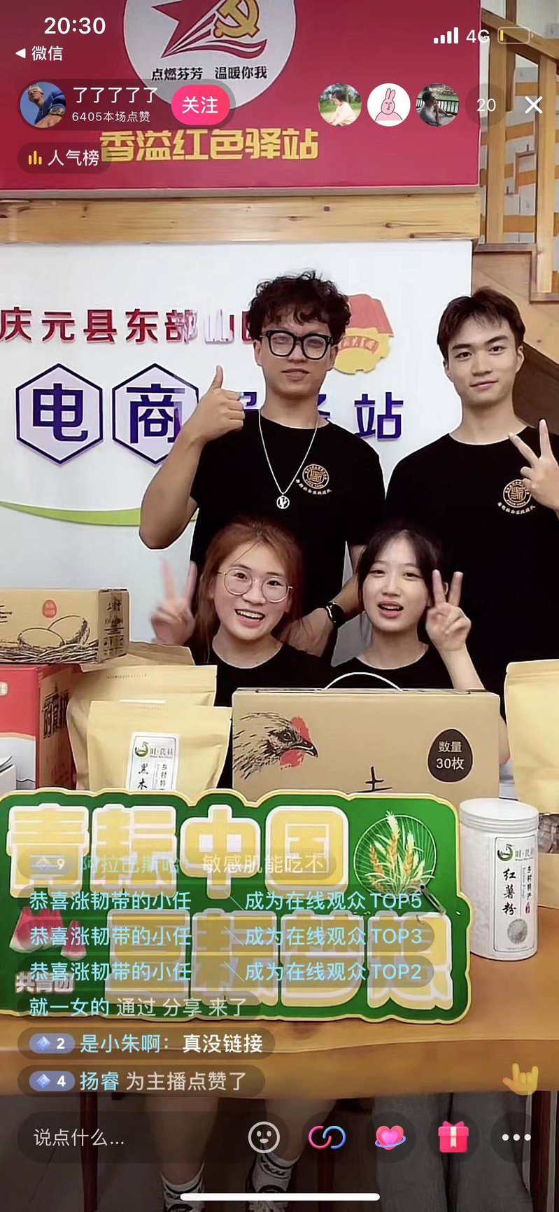 庆元县东部山区电商服务站是助农试点单位,着力打造“时·芪耕”系列生态农产品坚持生态+情怀的模式,优化留守老人帮扶机制,将大量由留守老人精心制作的优质农产品打通销售渠道,促进留守老人和村集体经济双增收、双致富。在这里,同学们化身主播开始体验直播带货,热情介绍手中农产品,积极与弹幕互动,深切体会电商直播新阵为促进产品销售纵深赋能。