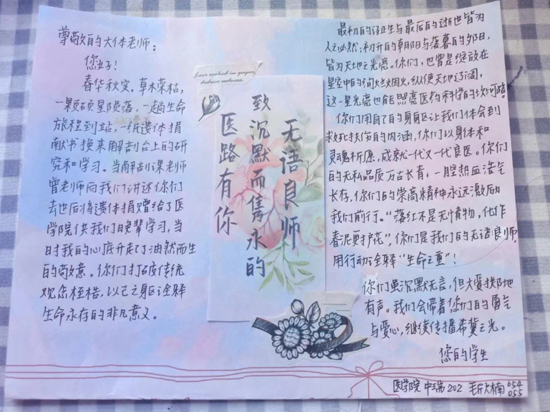 为庆祝8月19日医师节,医学院开展了“我想对‘无语良师’说”书信撰写活动。医学学子们用文字将心中所有的追思、感谢之情诉诸笔端,共同缅怀默默付出的“无语良师”。