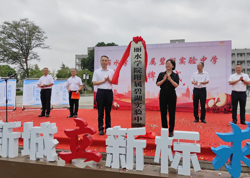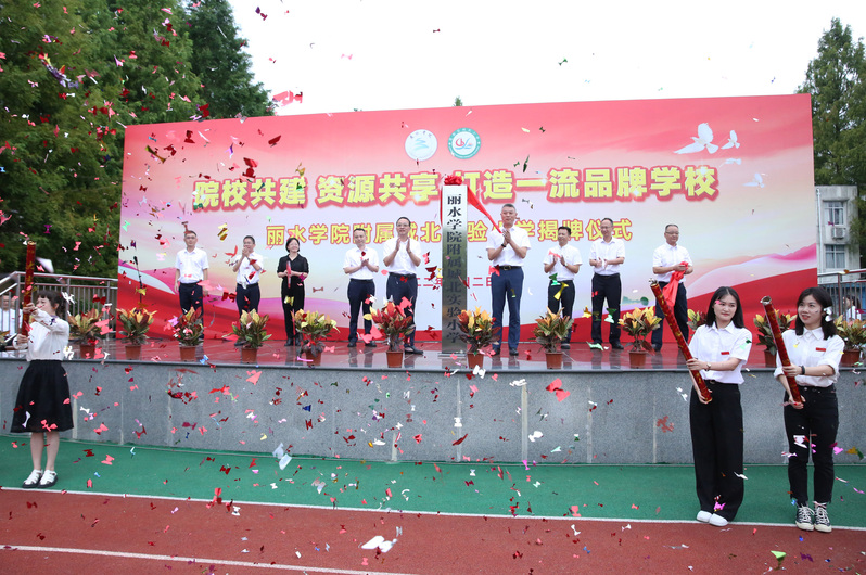 9月2日上午,丽水学院附属城北实验小学揭牌仪式在莲都区城北小学校内举行,市委常委、莲都区委书记张壮雄和我校党委书记王利琳共同为附属学校揭牌,副校长汪亚明宣读附属学校文件,校党委委员、办公室主任赵卫川和莲都区教育局局长李小富等出席仪式,莲都区副区长孙苗主持揭牌仪式。当天下午,丽水学院附属碧湖实验中学揭牌仪式在莲都区碧湖中学举行。