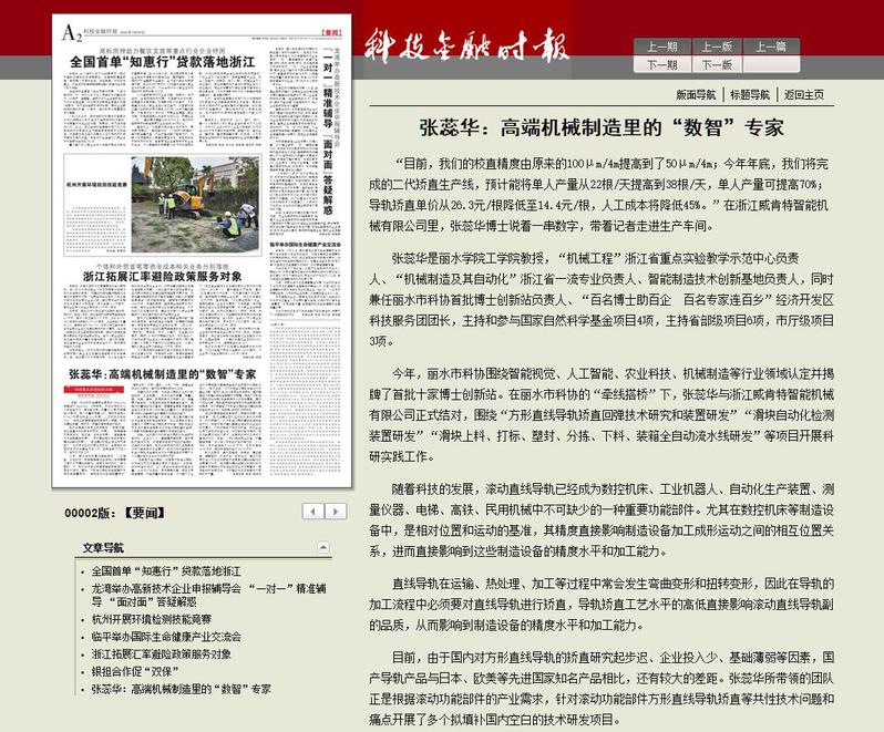 7月29日,《科技金融时报》刊发了我校张蕊华为高端机械制造贡献智力支持的消息。