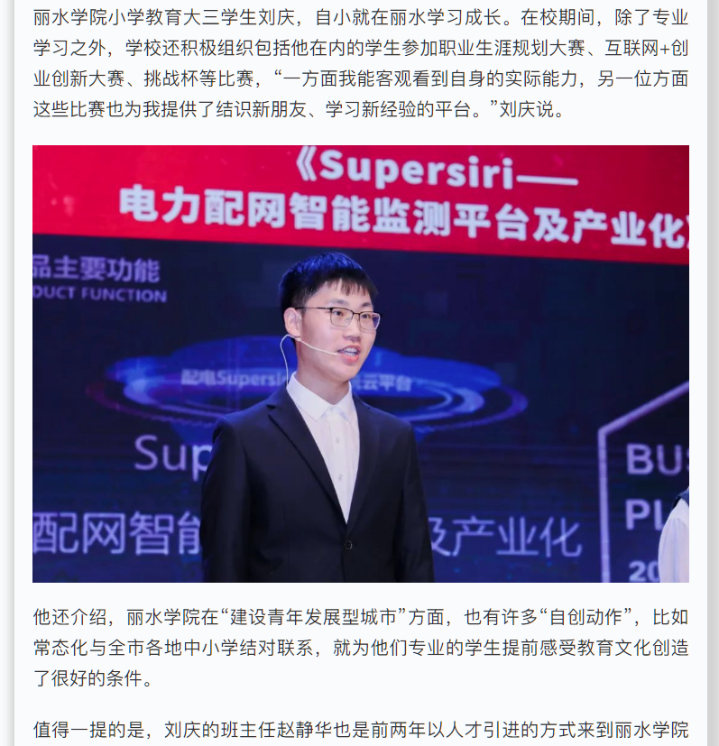 8月30日,学习强国浙江平台刊发了我校多名青年学生和教师积极投身丽水这座青春城市学习生活工作的消息。
