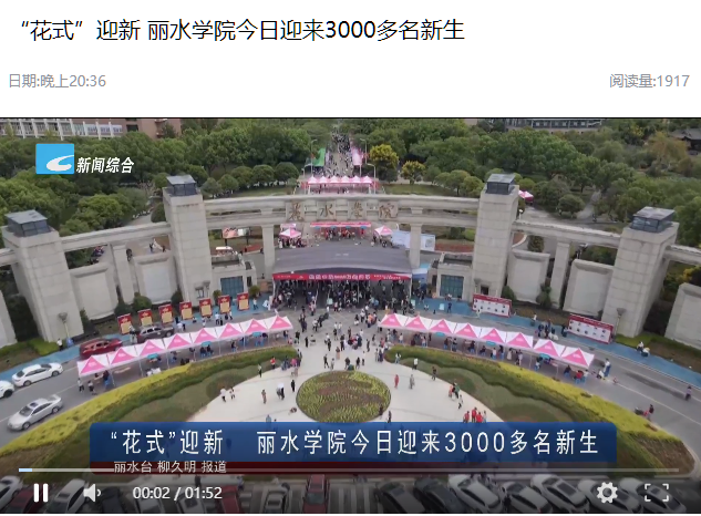 9月4日,丽水电视台新闻综合频道播出了我校“花式”迎新,报到日迎来3000多名新生的消息。