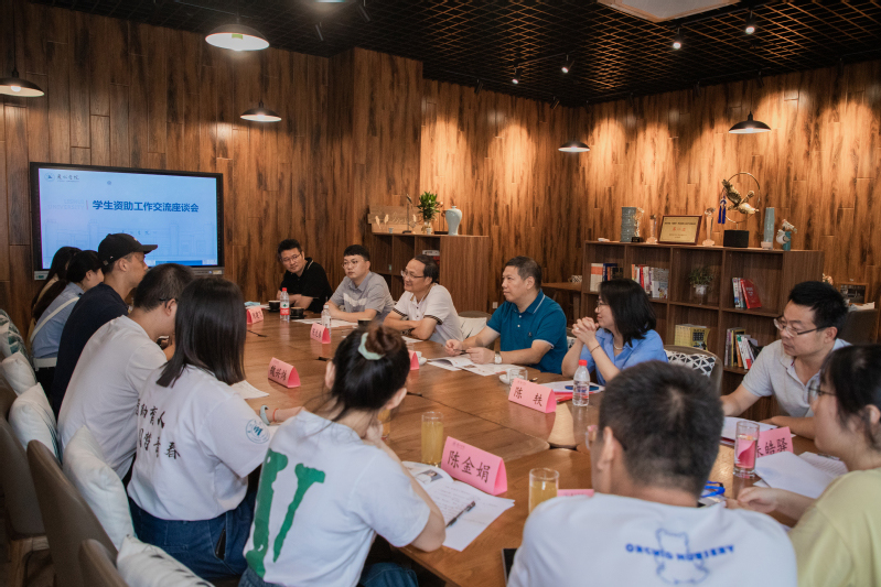 座谈会上,叶华松对陈龙春一行的到来表示热烈欢迎,对省教育发展中心一直以来对我校资助工作的关心表示衷心的感谢。在听取了我校学生资助工作汇报后,陈龙春充分肯定了我校“四链四化”并进资助育人体系的做法,并对我校资助工作提出三点期许,一是适应新形势、新要求,思考如何让资助工作促进学生全面成长成才;二是挖掘学生资助工作育人平台,思考如何培育更有影响力地资助育人载体;三是更好地将单项赋能变成双向共赋,让学生勇于接受资助。